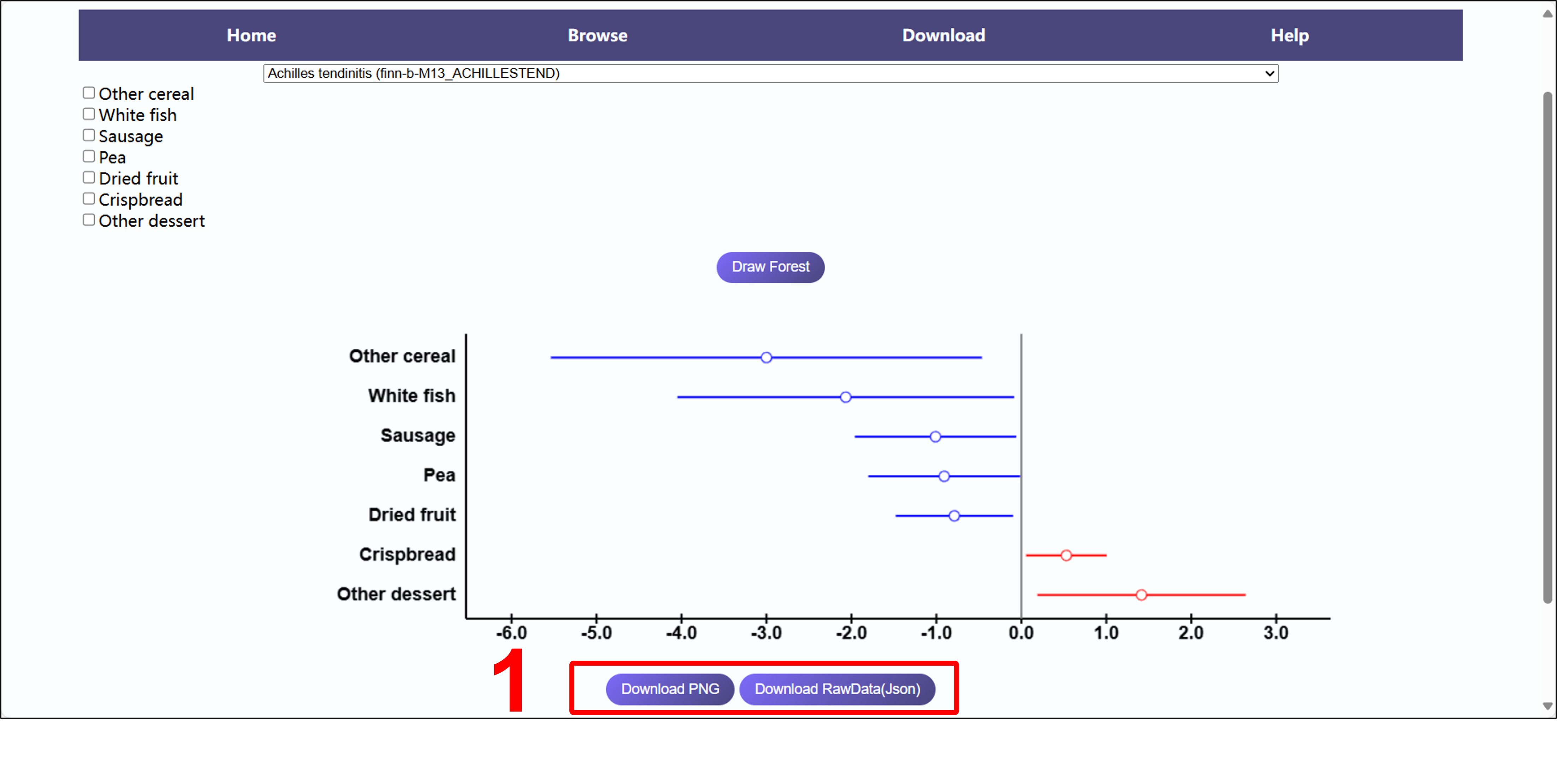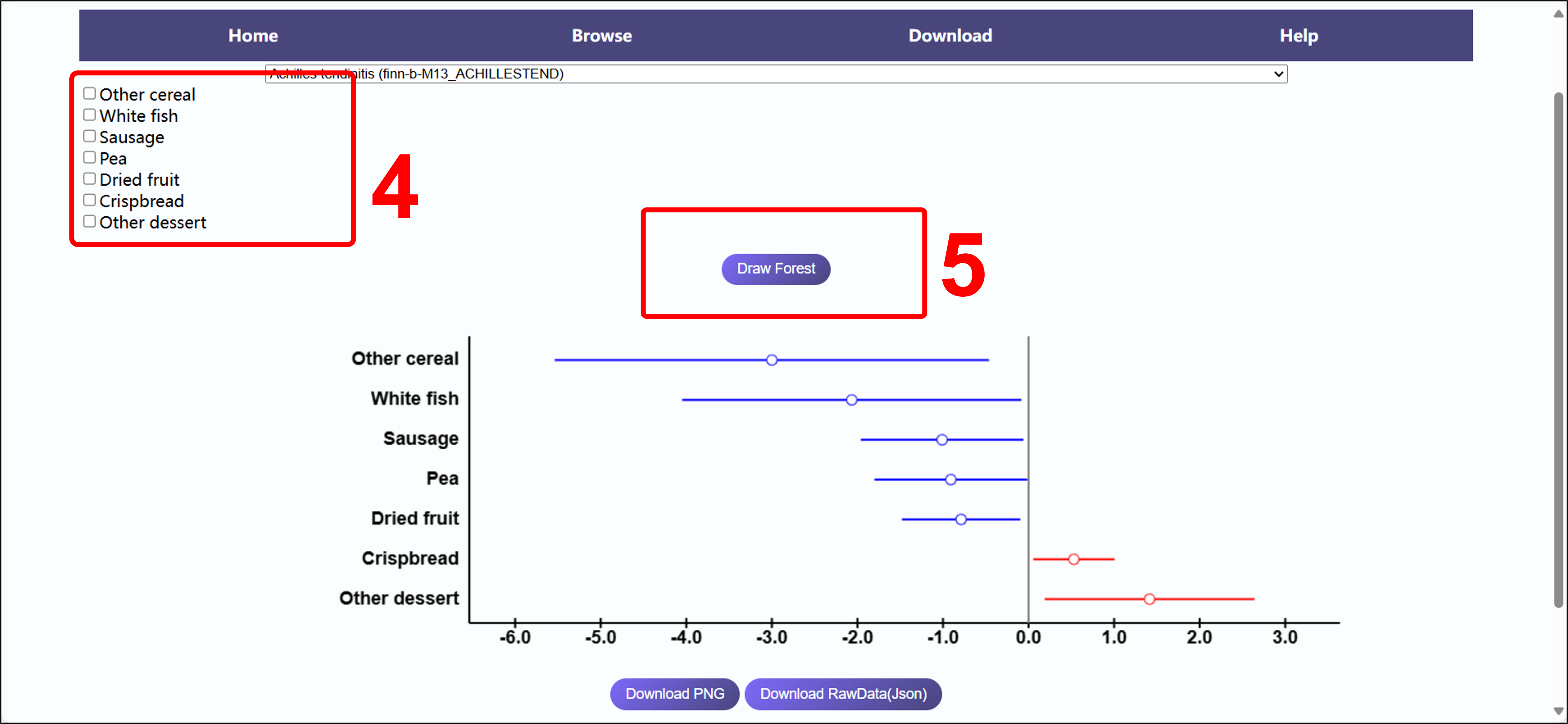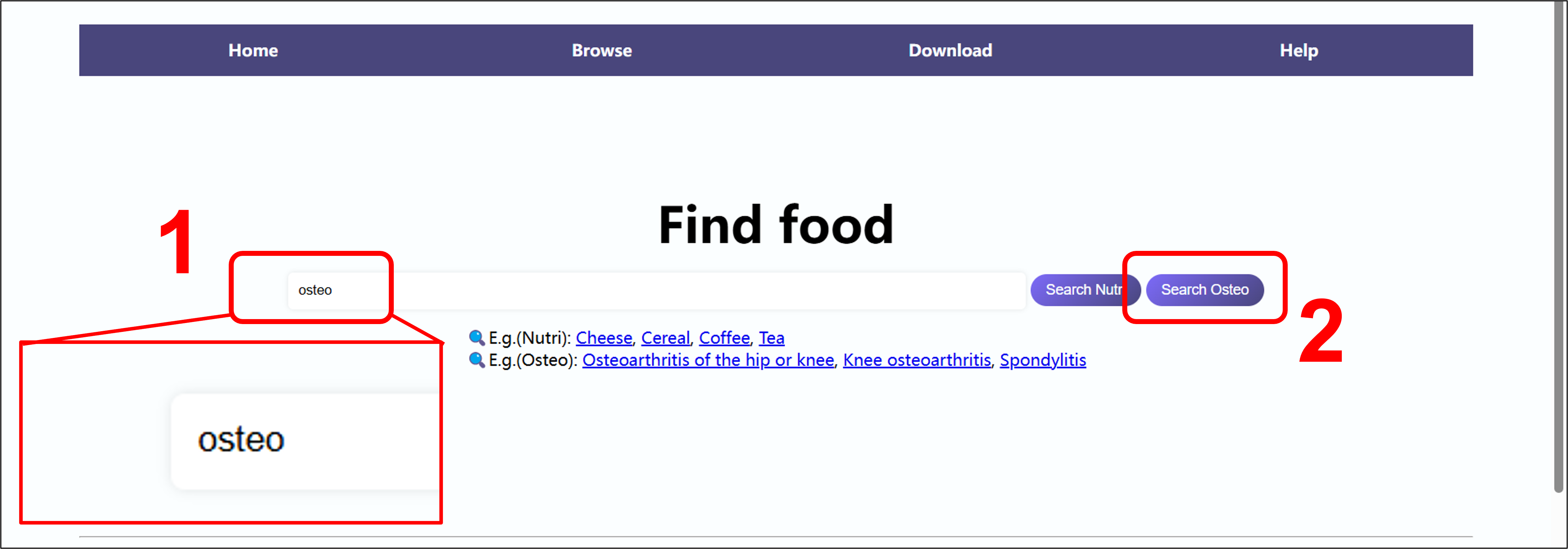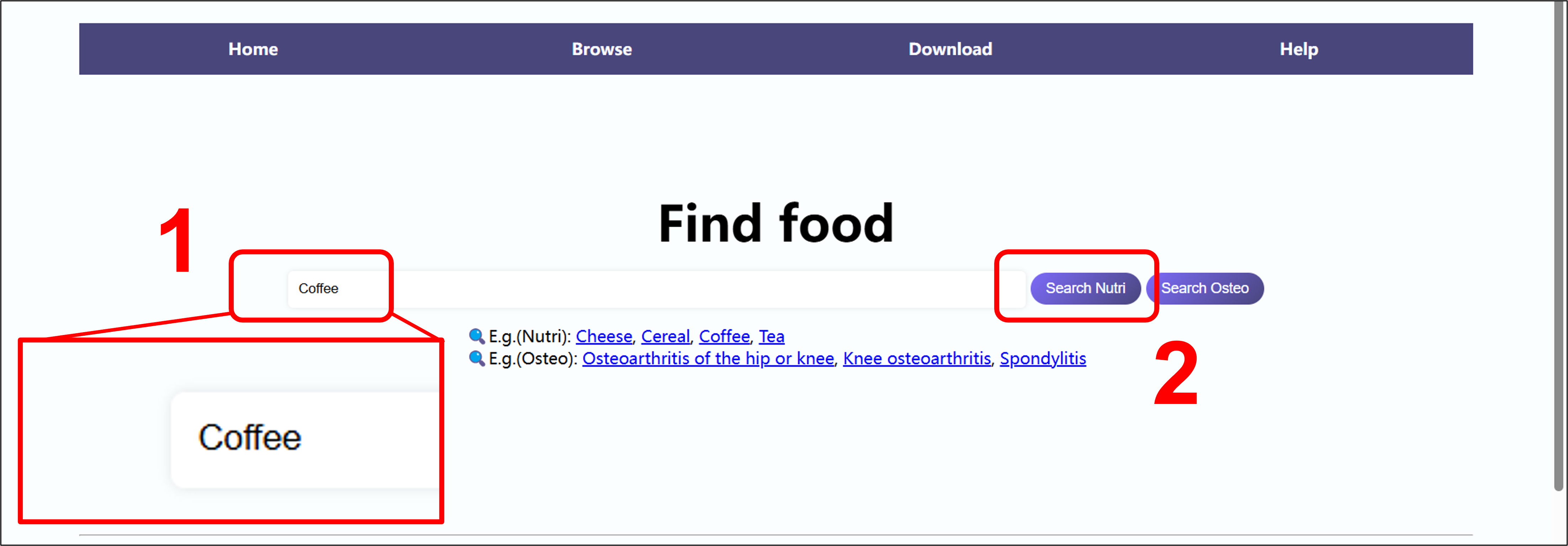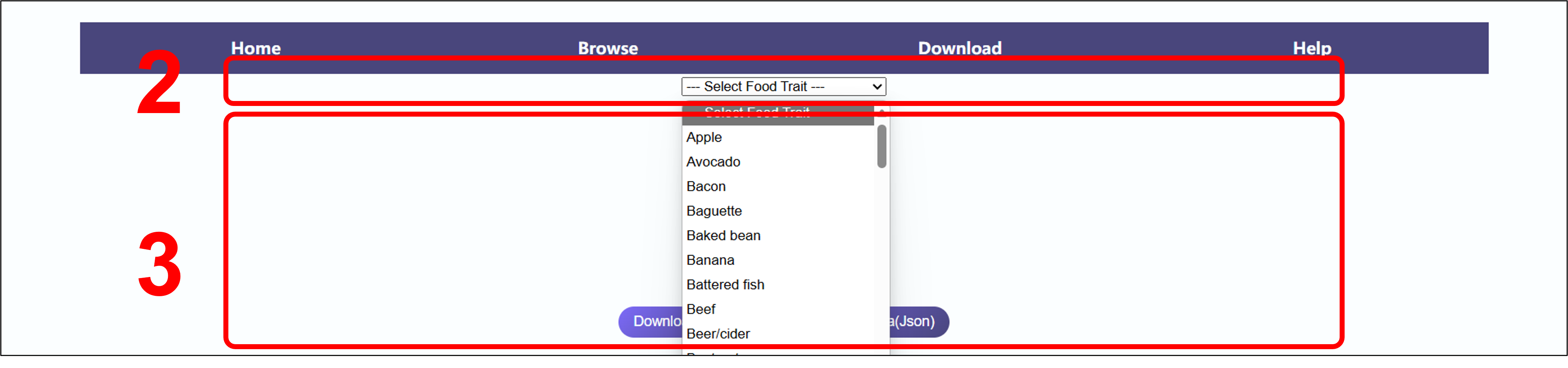 (3) Select the interested food's term in the drop - down box (sorted in alphabetical order).