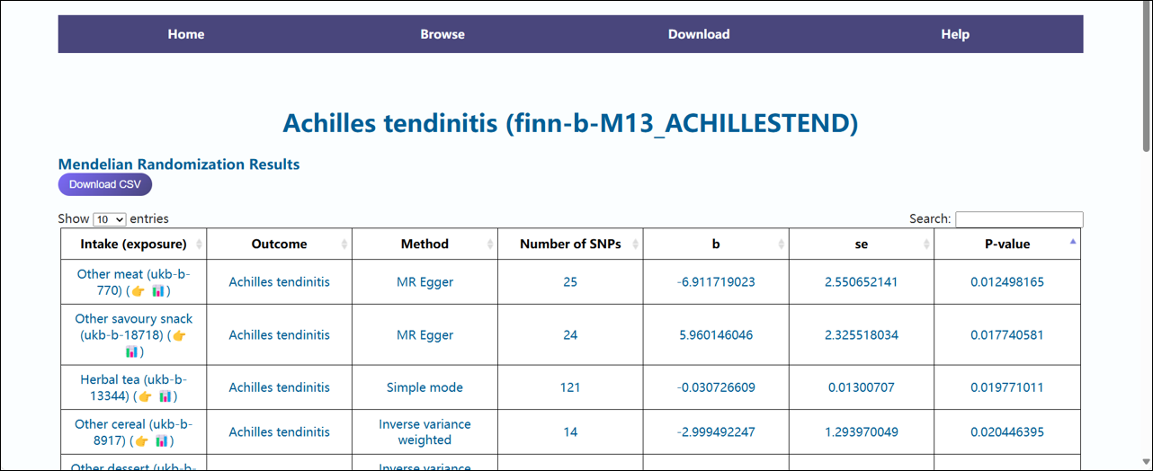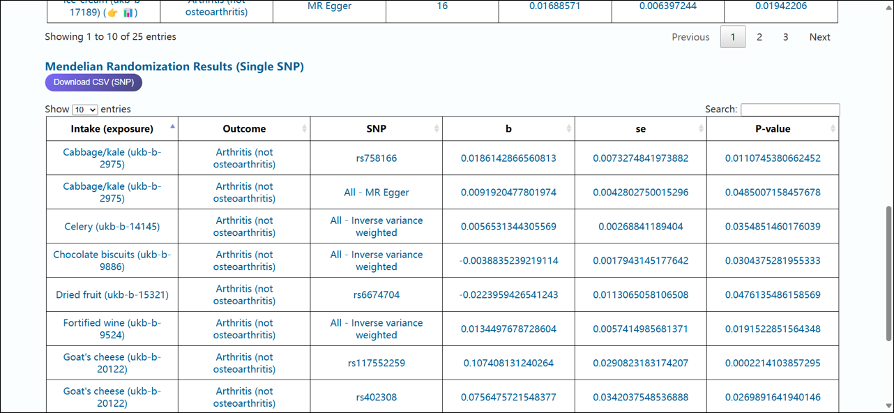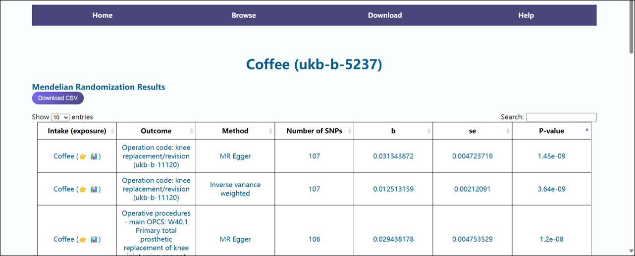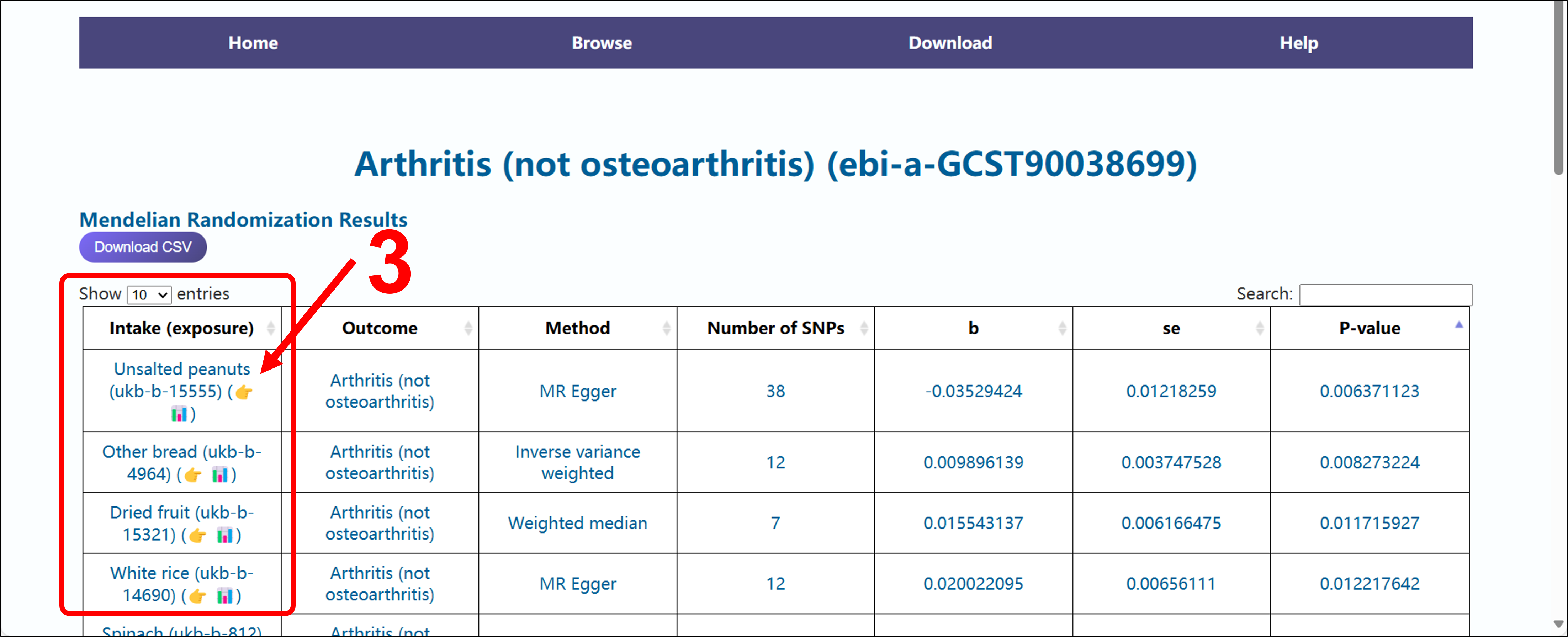 (3) Click the visualization button provided in the intake (exposure) column data of the first table to enter the Two - sample Mendelian analysis page.