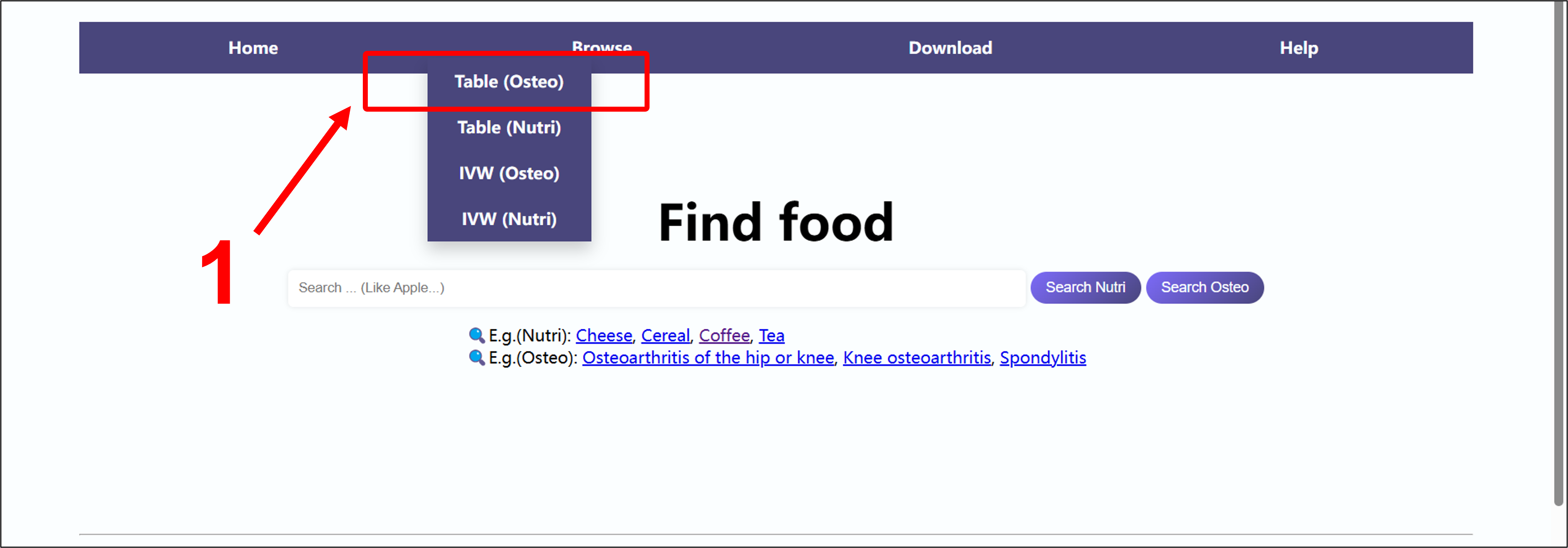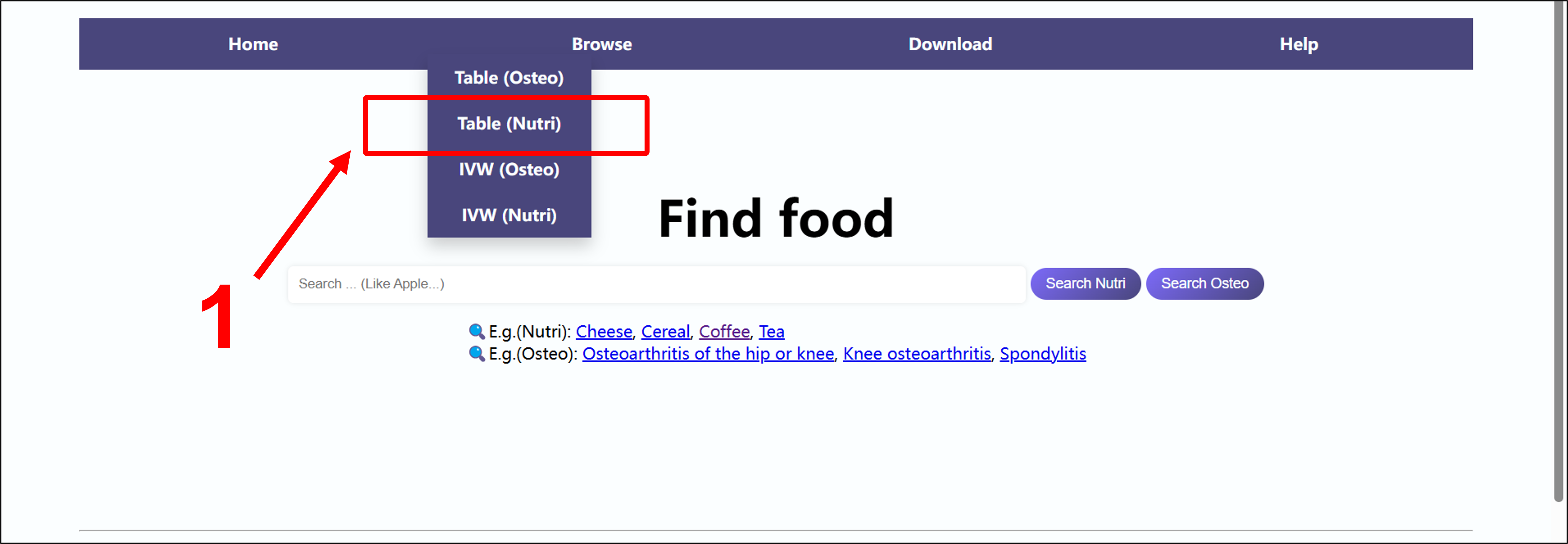 (1) Click on "Table (Nutri)" in the navigation bar.