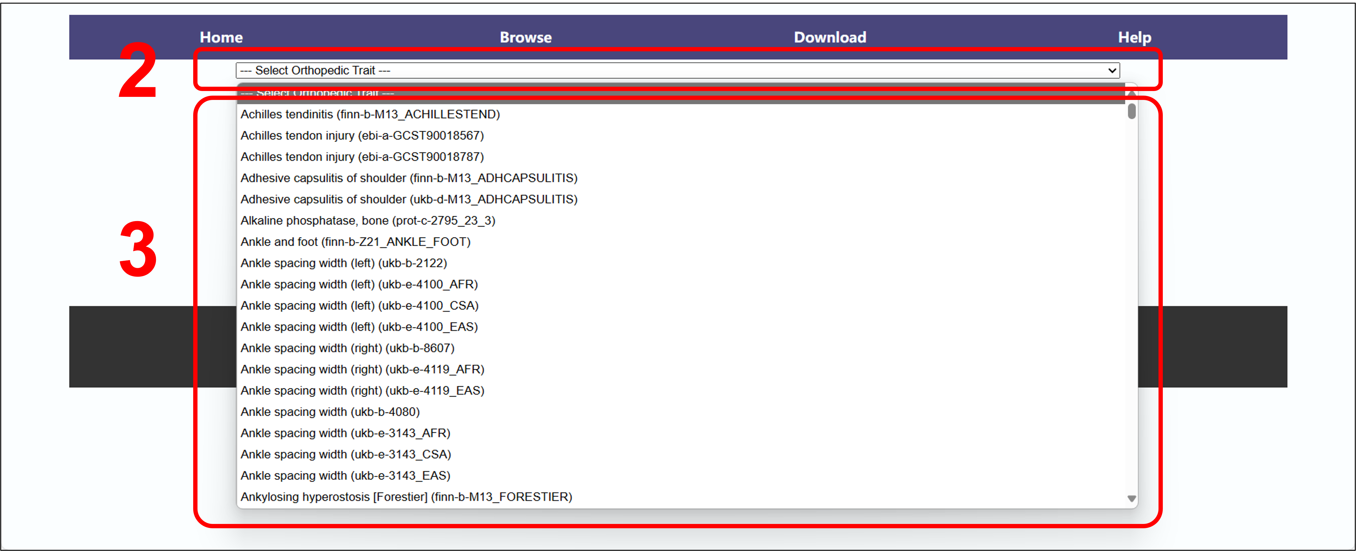 (3) Select the interested bone - related term in the drop - down box (sorted in alphabetical order).