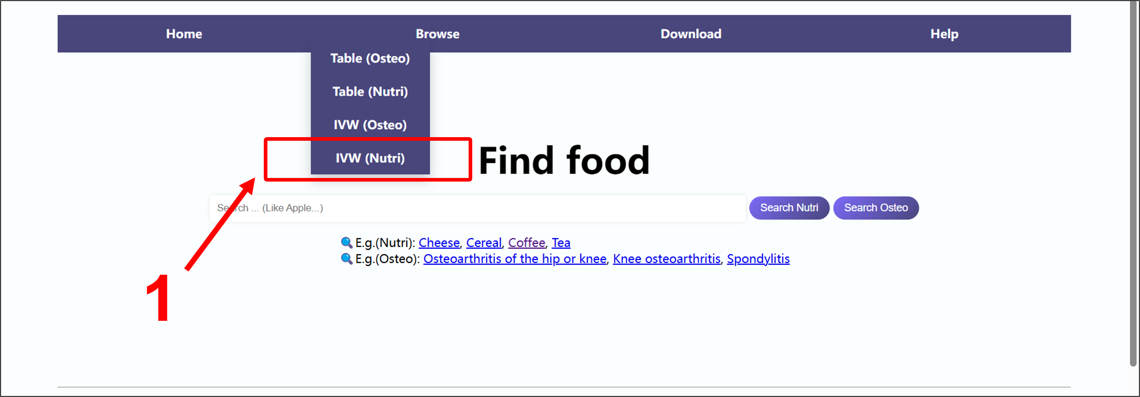 (1) Click on "IVW (Nutri)" in the navigation bar.